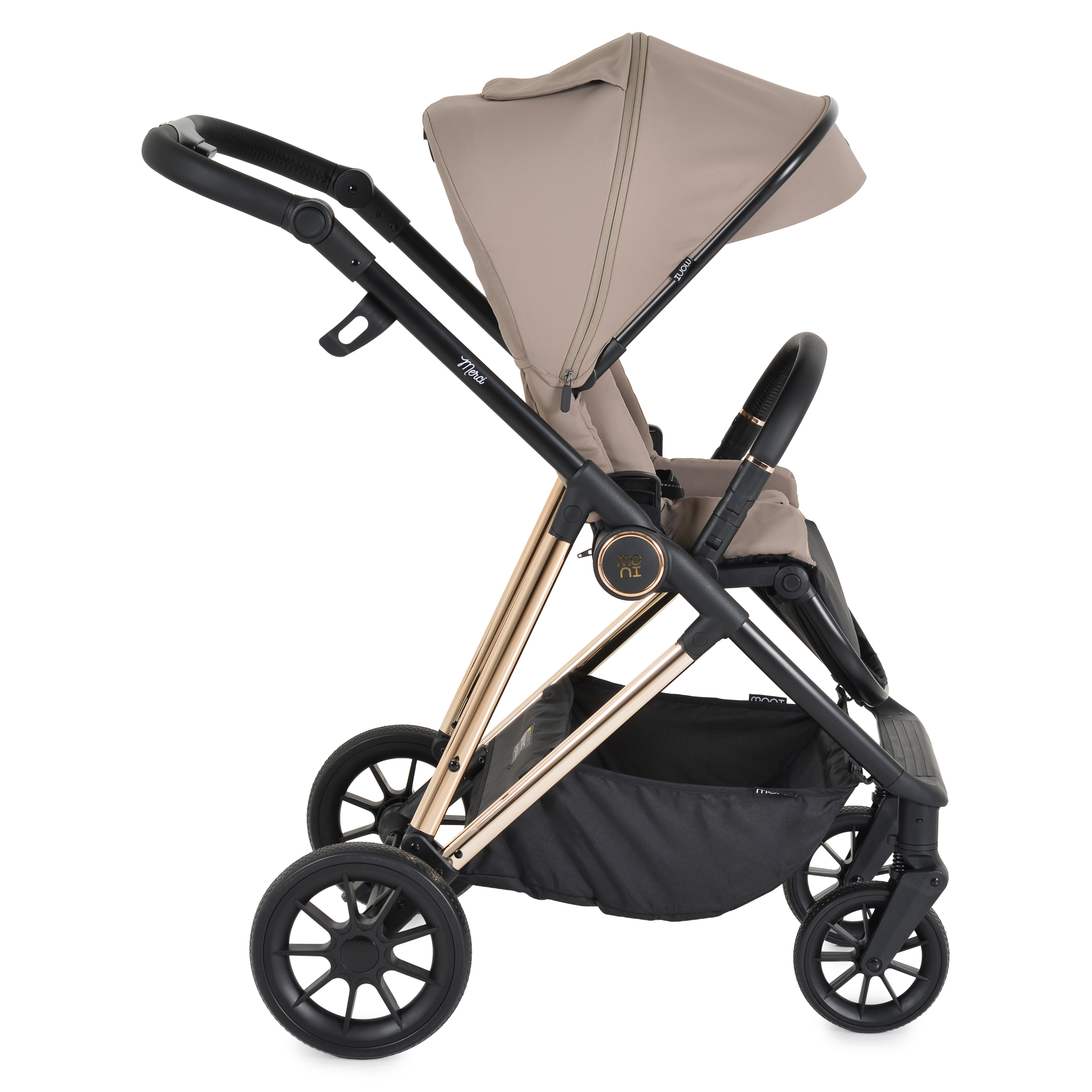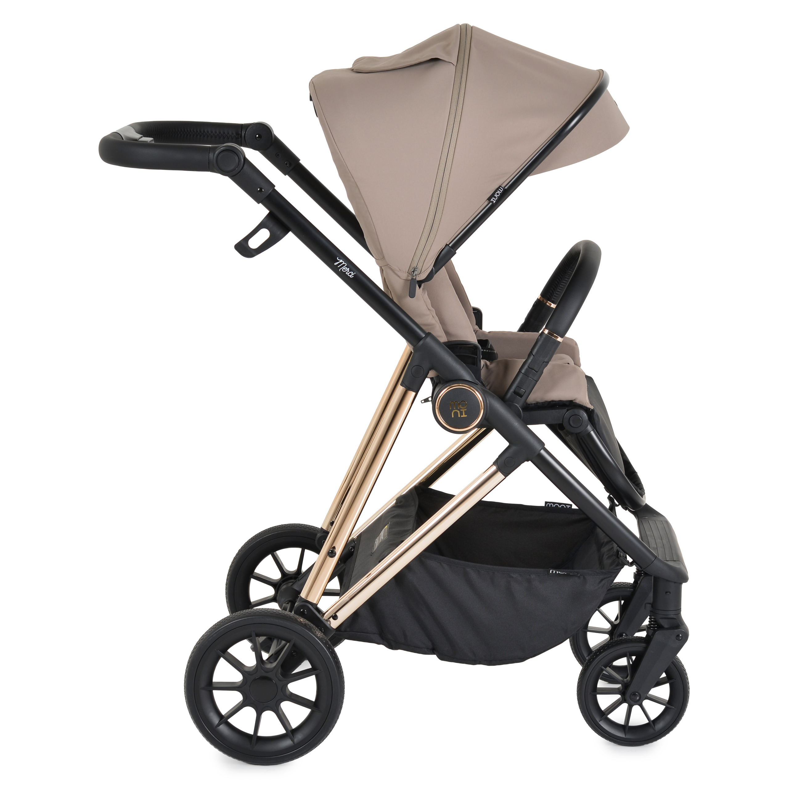 Kolica se sklapaju jednom rukom, bez obzira na smer sedišta, što je posebno praktično kada ste u pokretu. Memorijski tasteri omogućavaju lako skidanje i postavljanje nosiljke i sedišta, bez komplikacija. Podesiva ručka sa PU kožom i rotirajući prednji točkovi (360°) dodatno olakšavaju upravljanje.