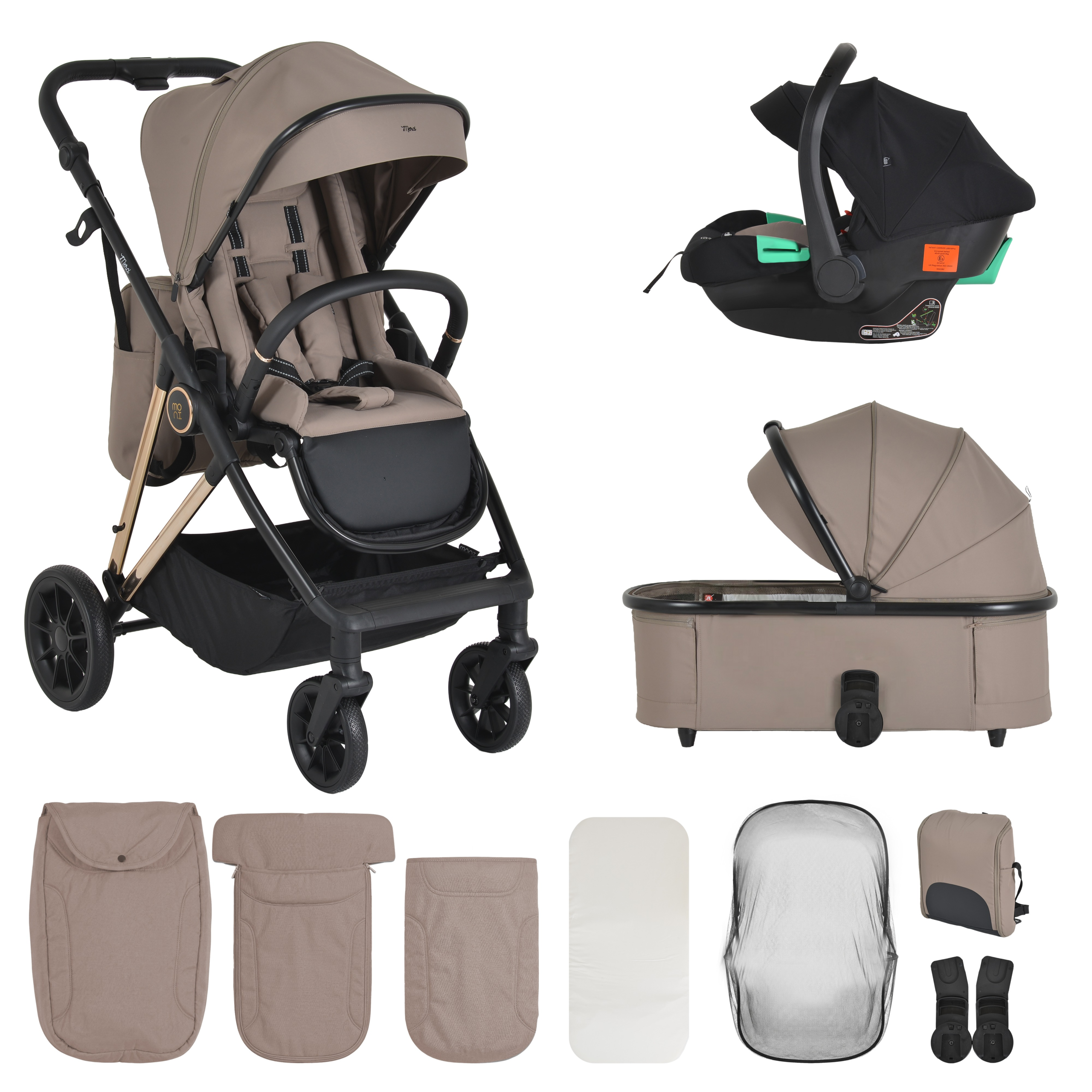 Ovaj 3 u 1 sistem uključuje šasiju, nosiljku za novorođenče, sportsko sedište i i-SIZE auto sedište (40–87 cm), kao i dodatnu opremu koja pokriva svakodnevne potrebe. Na taj način, ne morate posebno kupovati dodatne delove – sve je već usklađeno i spremno za korišćenje.